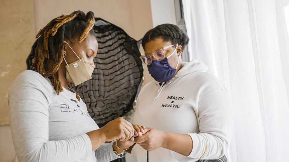 behind the scenes lights photoshoot face mask black woman black women black woman working crew crew member producers production team team teammates workmates buddies sisters workplace plants set clothingpublic domain
