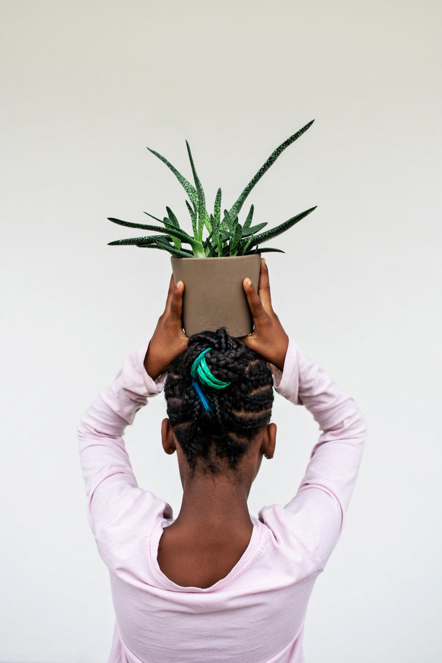 girl neutral negative space plant greenery houseplant flowerpot person wallpublic domain
