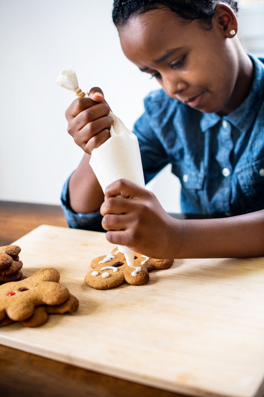 girl child cookies decorating cookies gingerbread christmas holidays baking people_ person human face clothing wall boypublic domain