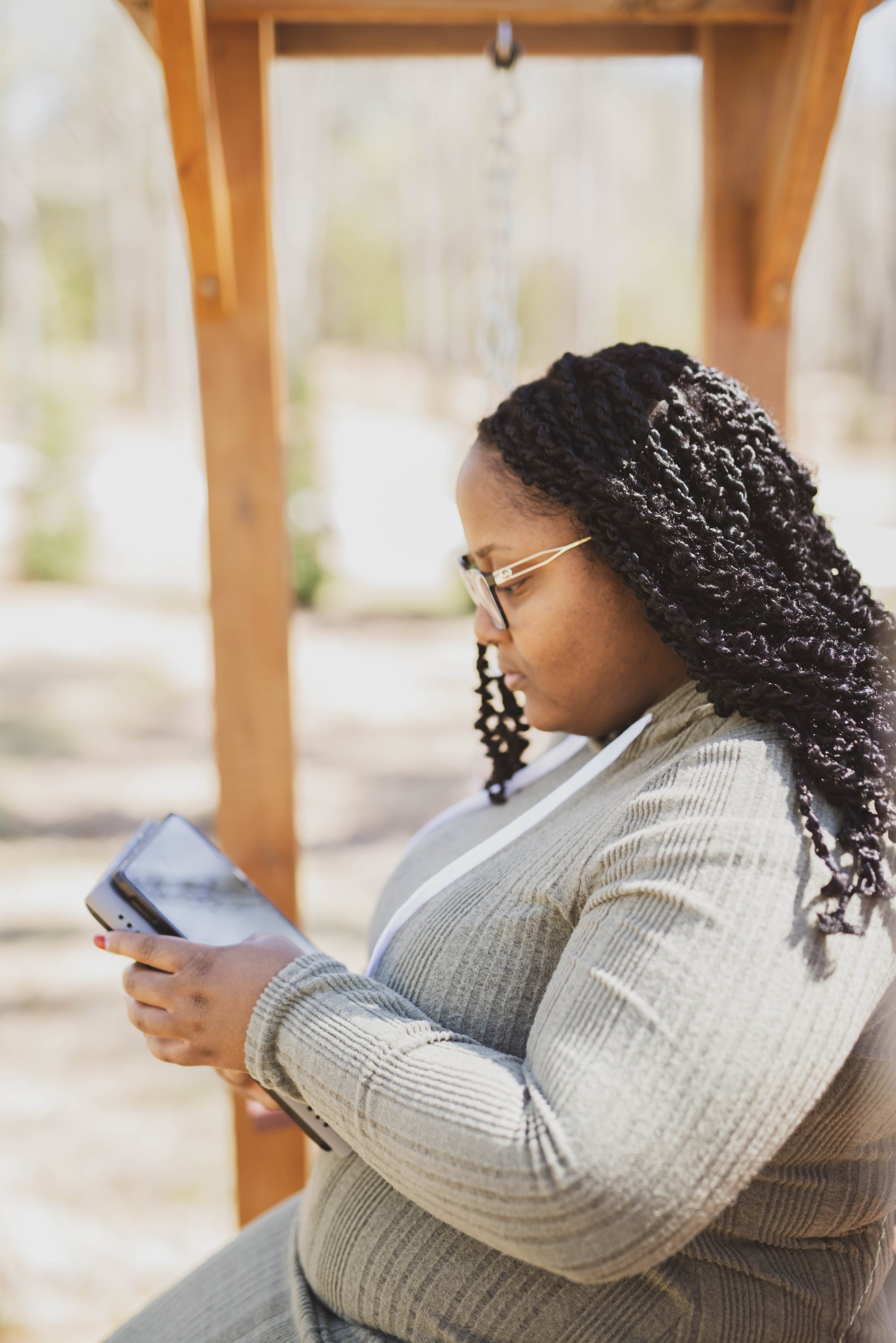 work beautiful woman working typing technology communicating tablet Digital person clothing human face fashion accessory mobile phone hat earrings glasses outerwear cornrows woodpublic domain