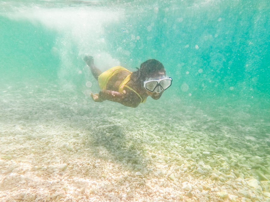 swimming underwater girl snorkeling beach ocean sea water adventure exploring yellow goggles nature fish. people_swimming sport underwater diving diving equipment outdoor divemasterpublic domain