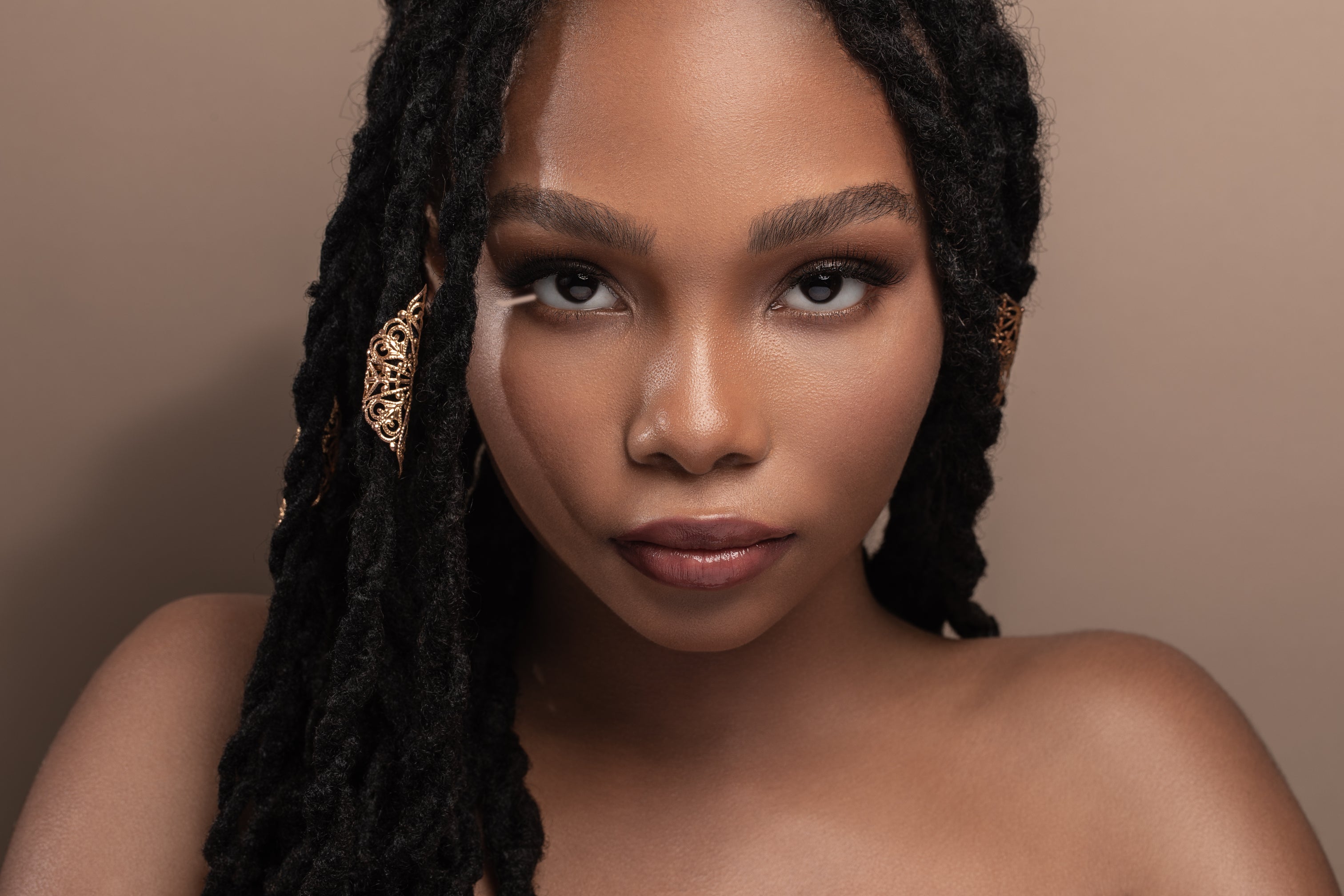 model makeup pose gorgeous pink beauty eye shadow lip gloss person human face neck chest wall jheri curl black hair throat skin flesh eyelash indoorpublic domain