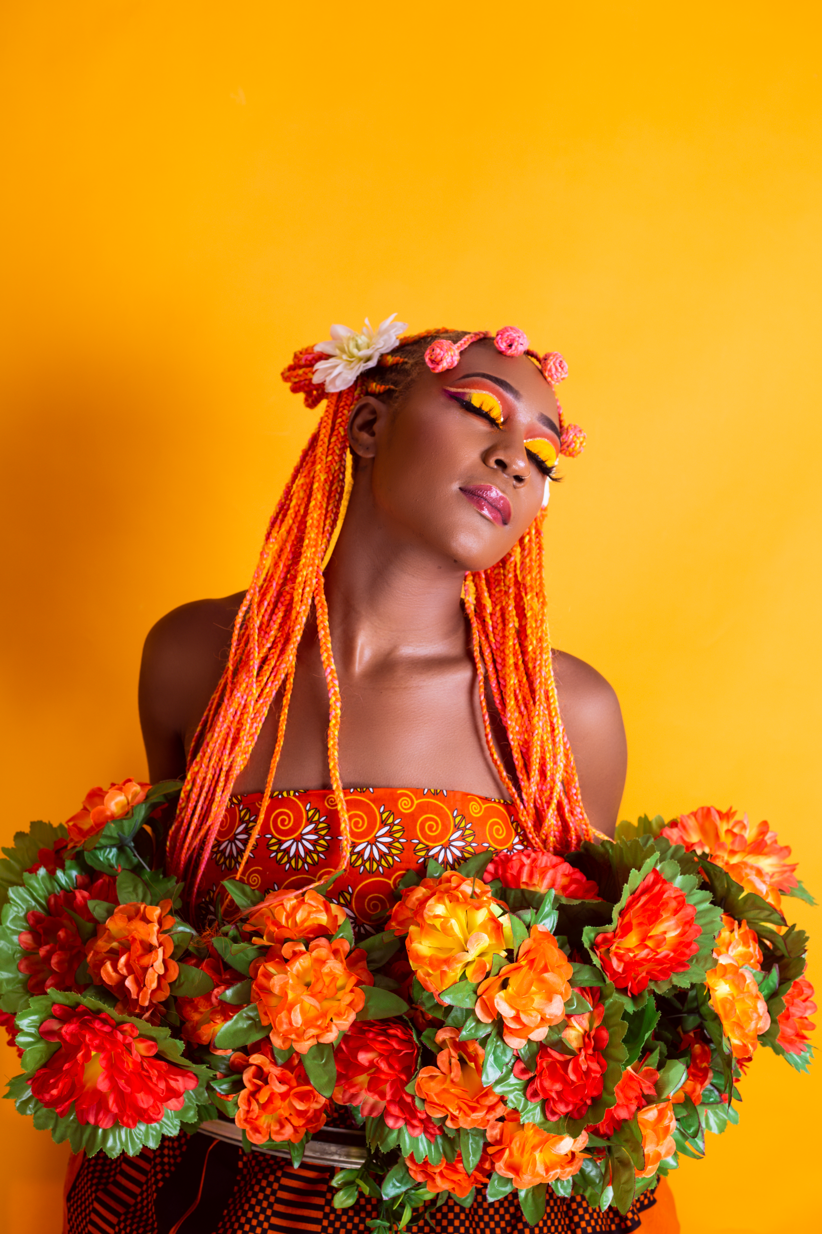 colors flowers yellow orange woman female portrait model people_ rose floral design human face flower fashion accessory cut flowers floristry flower arranging wall person leipublic domain