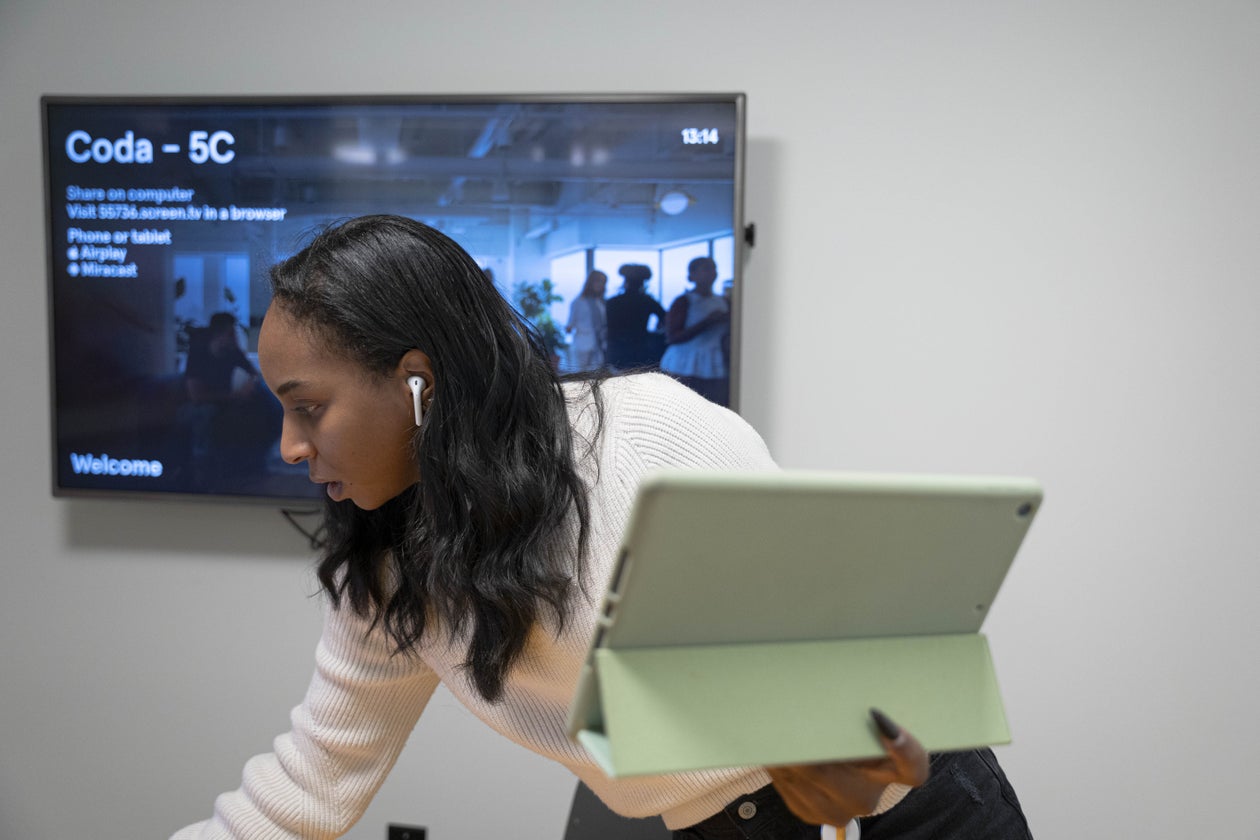 women woman tech color black latina hispanic businesswomen businesswoman entrepreneur engineer developer laptop person human face computer indoor wall clothing personal computerpublic domain