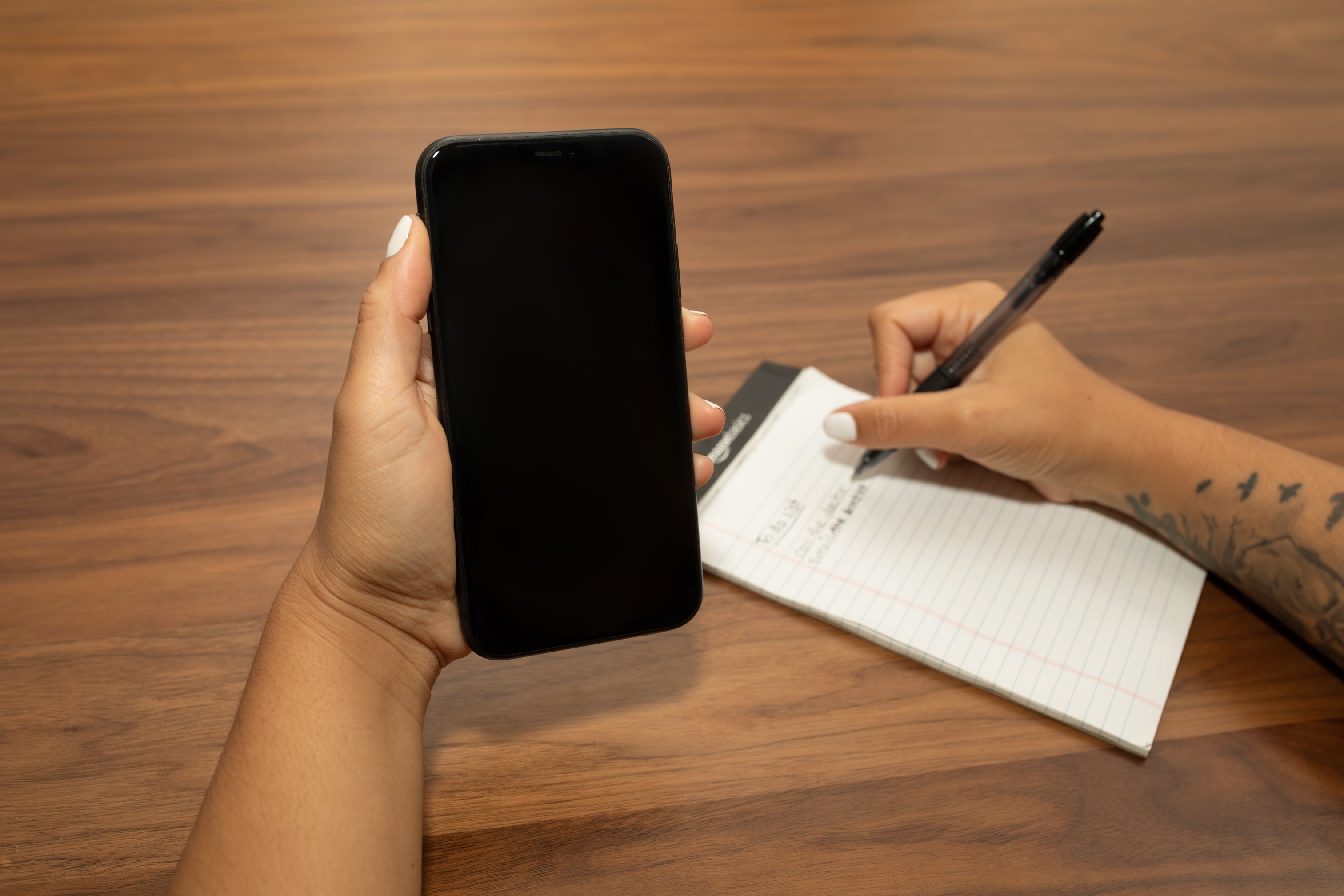 iphone cell phone device notepad pen writing hands nail polish office supplies mobile phone gadget portable communications device nail office instrument communication device person floor mobile device electronic device handwritingpublic domain