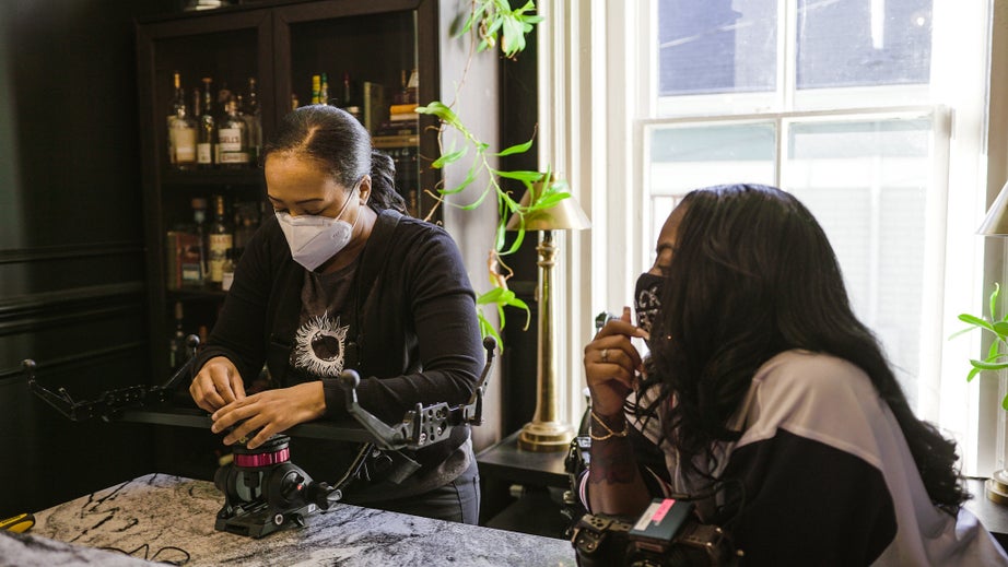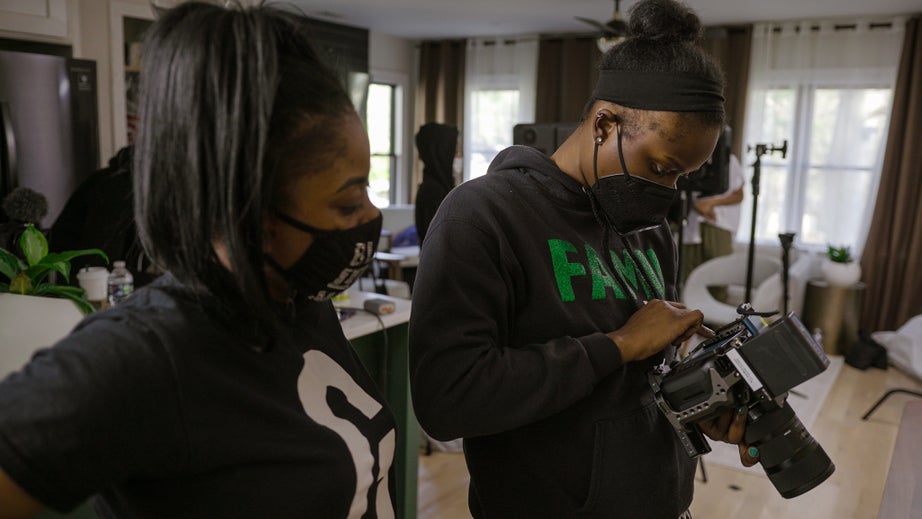 behind the scenes photoshoot Black Women working workplace production recording bts camera device filming photographer photography videography cameraman camerawoman on set people team togetherpublic domain