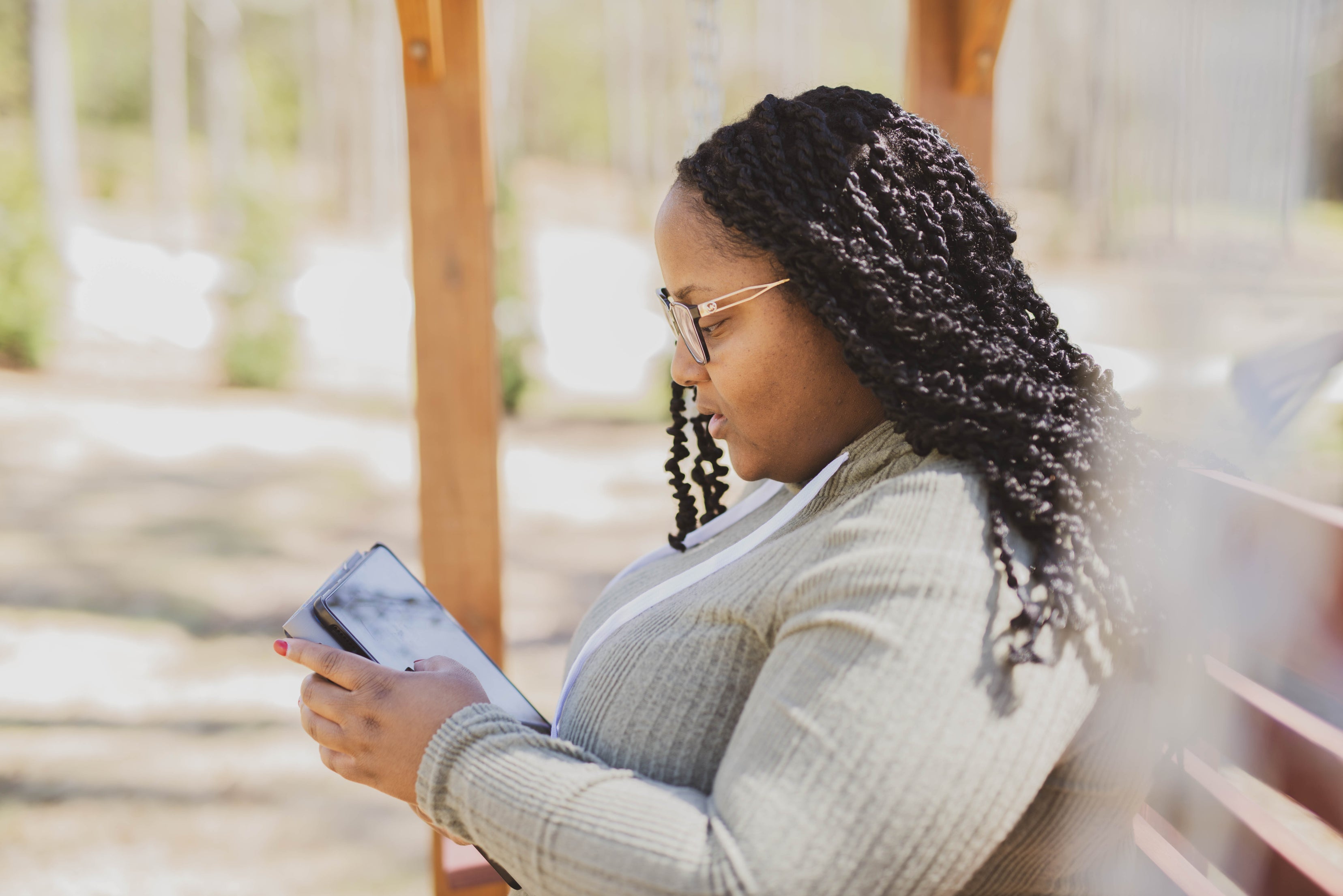 work woman working typing technology communicating tablet device gadget person clothing human face outdoor reading wooden glasses mobile phone top leisure cornrowspublic domain