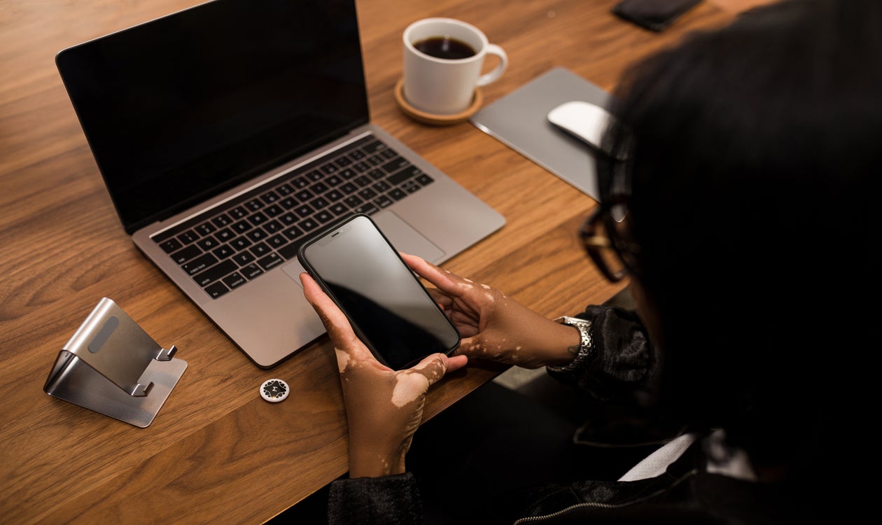behind the scenes photoshoot working black woman work workplace face mask plaid shirt bts employee african american black company hairstyle table tableware photography adult Eye fashionpublic domain